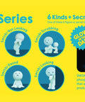 The line-up contains 6 different designs which glow in the dark, there is a possibility of a secret design. You will receive 1 random design if you purchase 1 Blind Box.