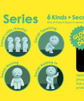 The line-up contains 6 different designs which glow in the dark, there is a possibility of a secret design. You will receive 1 random design if you purchase 1 Blind Box.